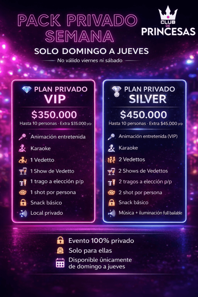 El 12 de Diciembre del 2022 renace el Club de Princesas (hicimos 2 eventos en el 2016), con la necesidad de tener un espacio privado para las chicas que desean celebrar su despedida de soltera de manera tranquila, con un show de calidad de deliciosos hombres y un trato de Princesa, sin cargantes ni jotes al acecho y que los unicos hombres en el Club sean los Vedettos y el Staff.